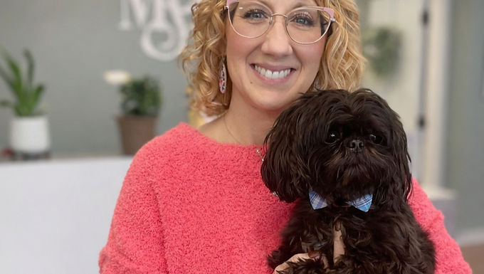And then there's Lando — Lisa's therapy dog, who shows up to sessions ready to bring smiles and help regulate the nervous system wherever he goes. (He takes his job very seriously.) When Lisa is treating herself, it's a massage or a mani/pedi. She has clearly earned both.